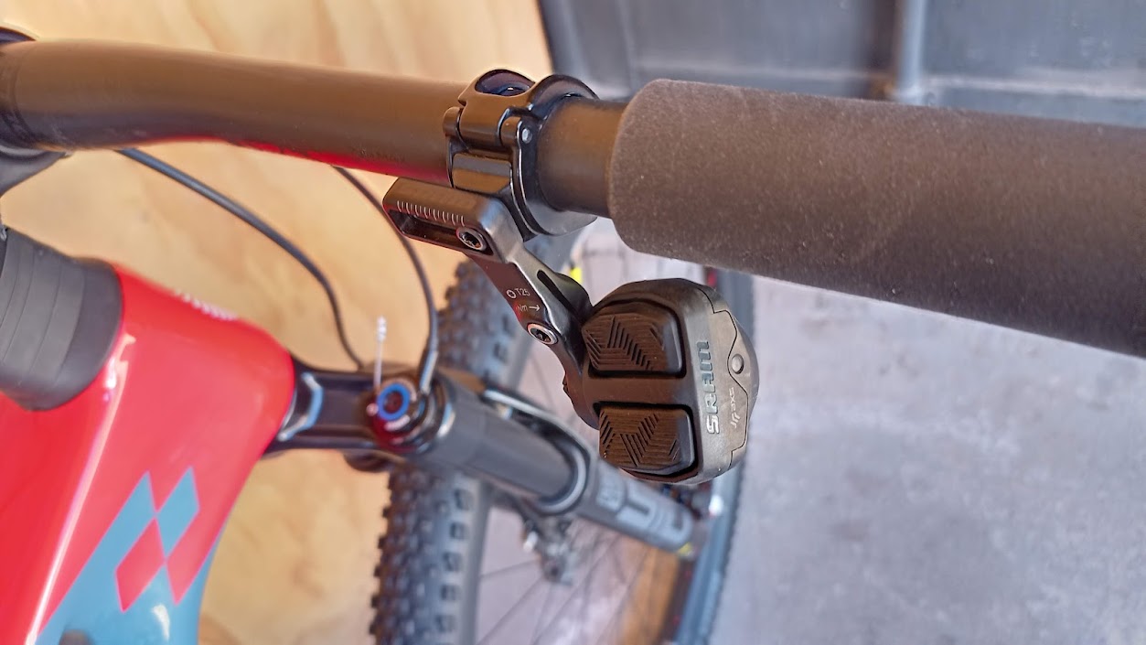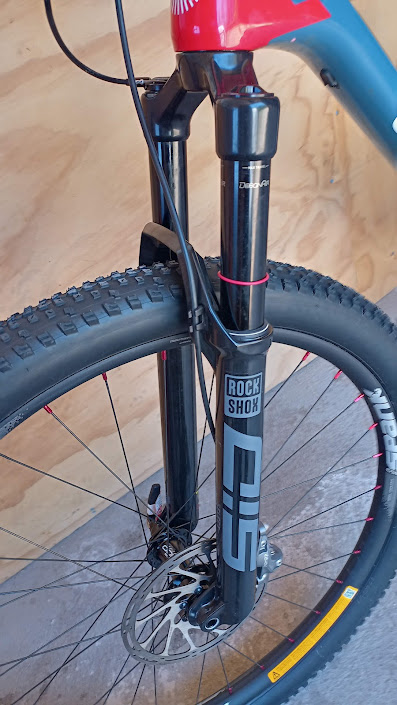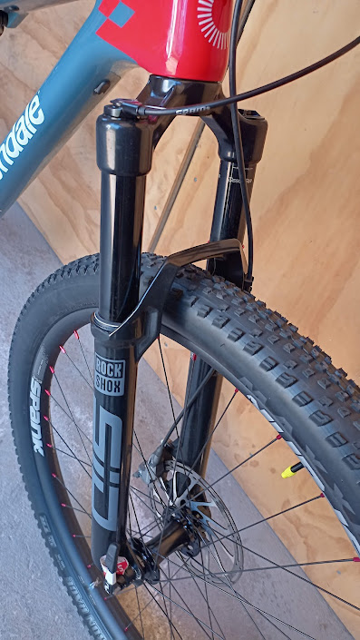 DETALLE SUSPENSIÓN RockShox SID Select RL 120mm DebonAir 15x110mm thru-axle tapered steerer 44mm offset TwistLoc Ultimate remote dual lockout